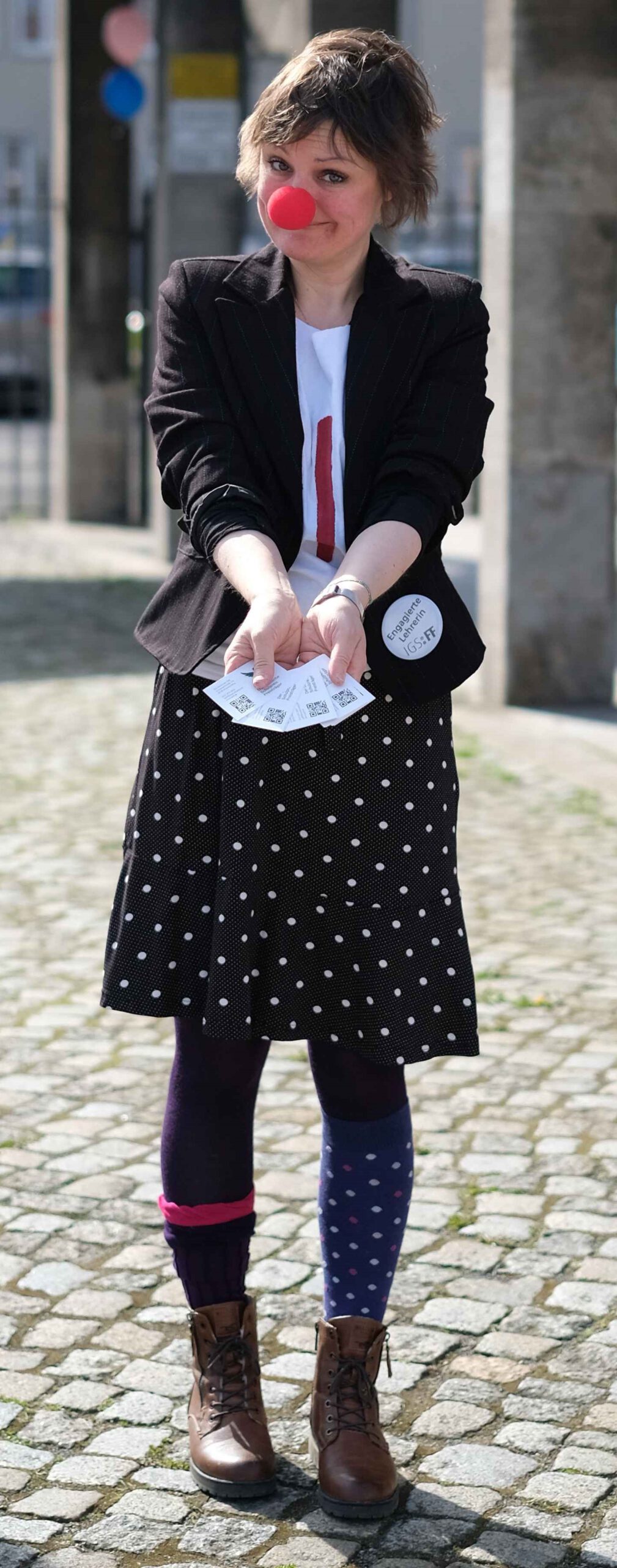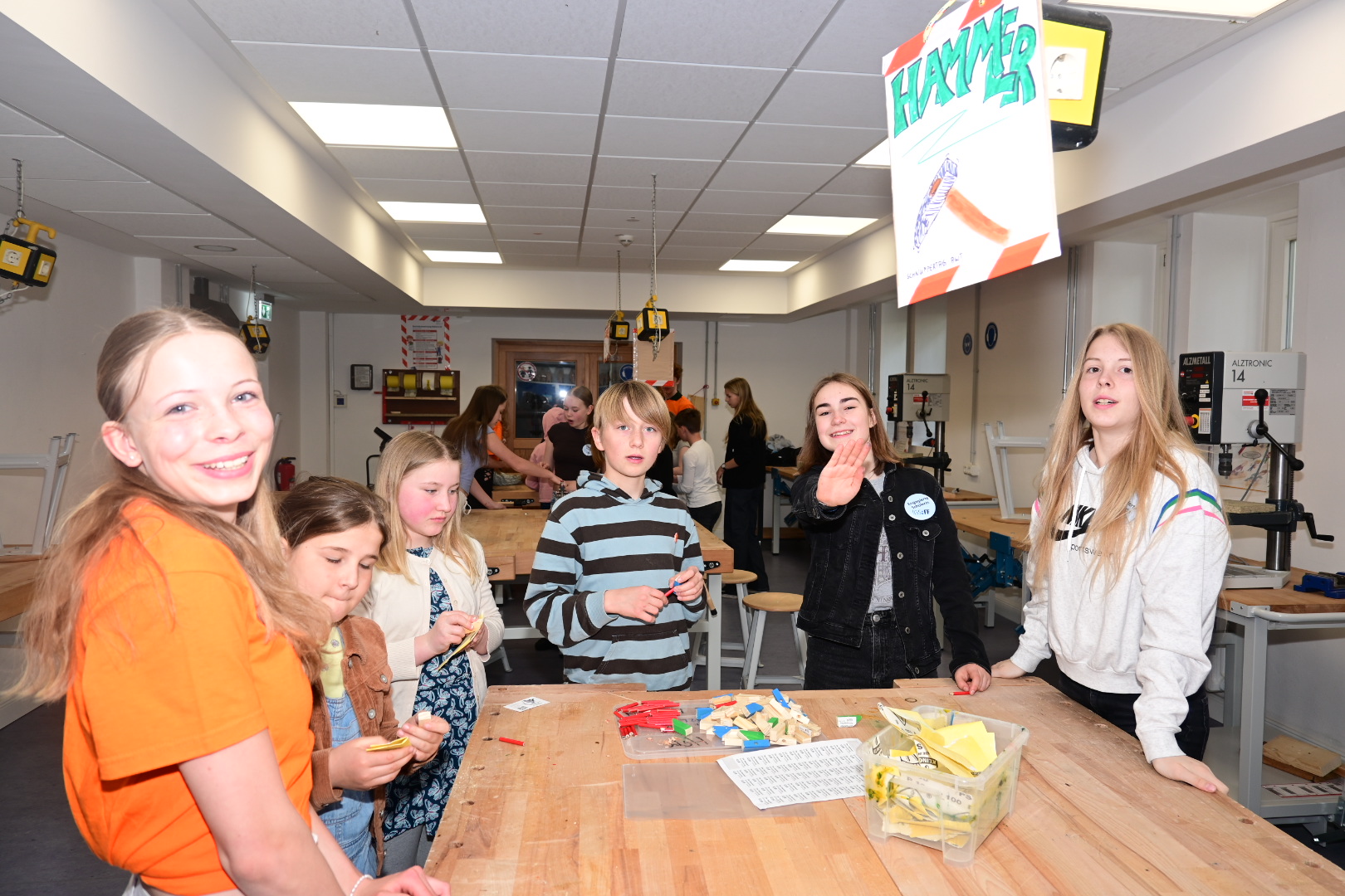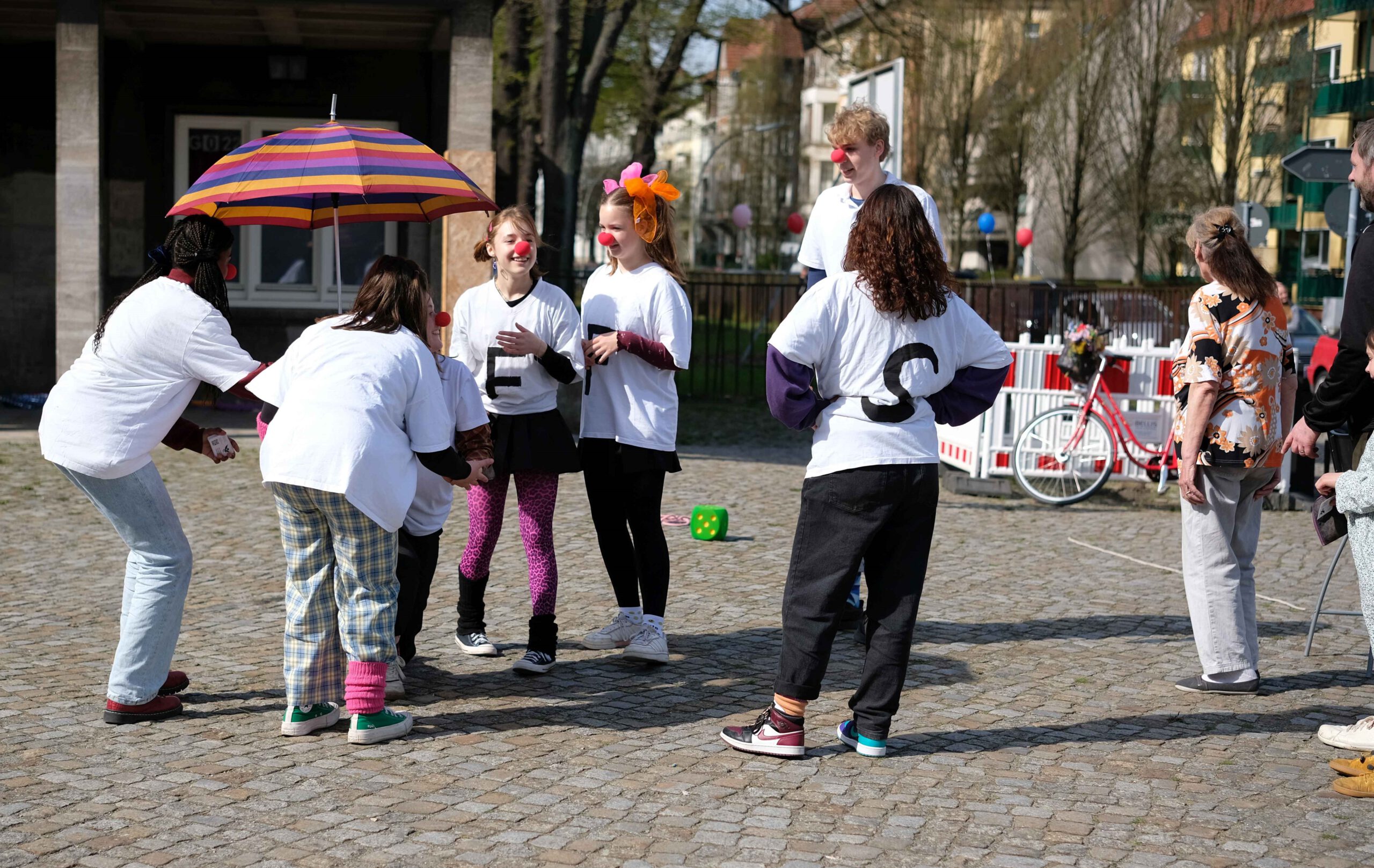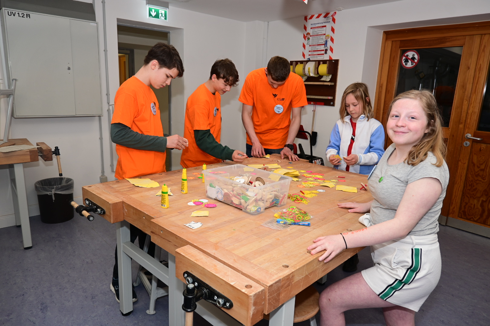 Schon am Empfang wurde durch die IGS:FF-Clowns für gute Laune gesorgt. Die Kinder konnten an verschiedenen Stationen durch geleitete Gruppen Einblicke in das Leben an der IGS:FF bekommen: Schüler:innen der Schule führten die Gruppen durchs Gebäude und das Schulgelände. Von mathematischen Spielen, über Kunst herstellen, über Buttons produzieren und Roboter steuern, über Märchen und Gesellschaftslehre mal anders kennenlernen, über Spaß an Sprachen und Darstellendem Spiel haben, bis zum Sozialen Training und dem Schulgarten mit dem Kaninchen – es gab viel zu entdecken und man hatte offensichtlich Spaß! Die Eltern konnten in der Zeit Kaffee und Kuchen beim Mensateam erhalten und sich mit Kolleg:innen und Eltern der Schule unterhalten.