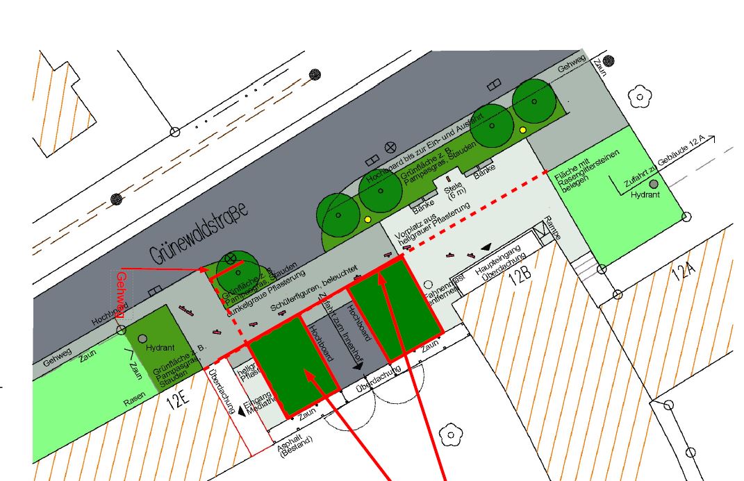 Diese Maßnahmen greifen einer geplanten Entwicklung vor: Seit über zehn Jahren ist eine Umgestaltung des Vorplatzes geplant. Ein Wettbewerb in der Schülerschaft erbrachte ein Ergebnis, das jedoch aufgrund der Bauarbeiten an der IGS:FF bisher nicht umgesetzt wurde und sich weiter verzögern wird.