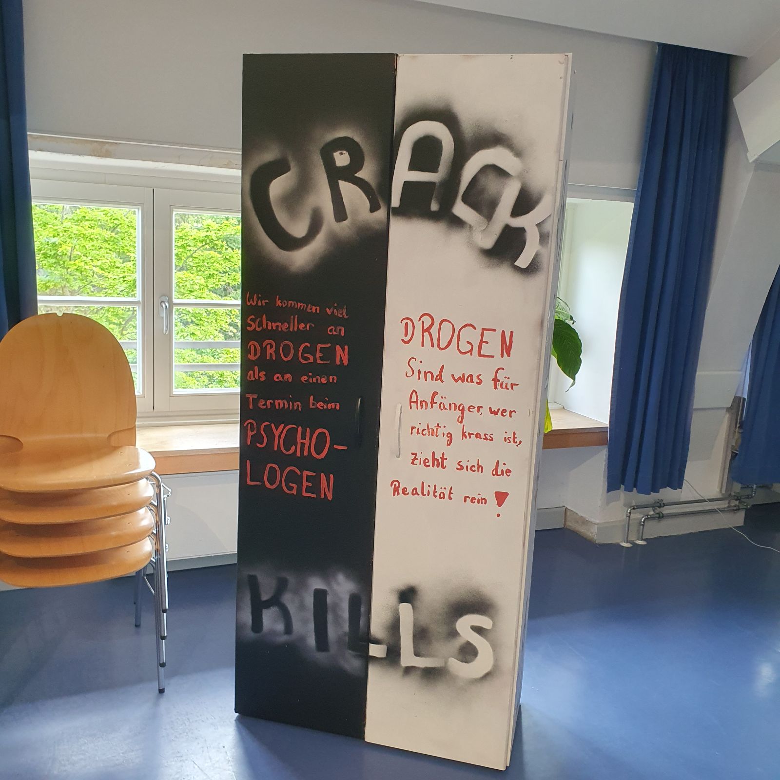 Im Workshop „Sucht und Sehnsucht kreativ“ hatten die Jugendlichen die Möglichkeit, ihre Gefühle und Emotionen durch verschiedene künstlerische Ausdrucksformen zu vermitteln. In Projekten wie Malerei und Collagen konnten sie ihre individuellen Perspektiven auf das Thema erforschen und ihre Werke präsentieren.