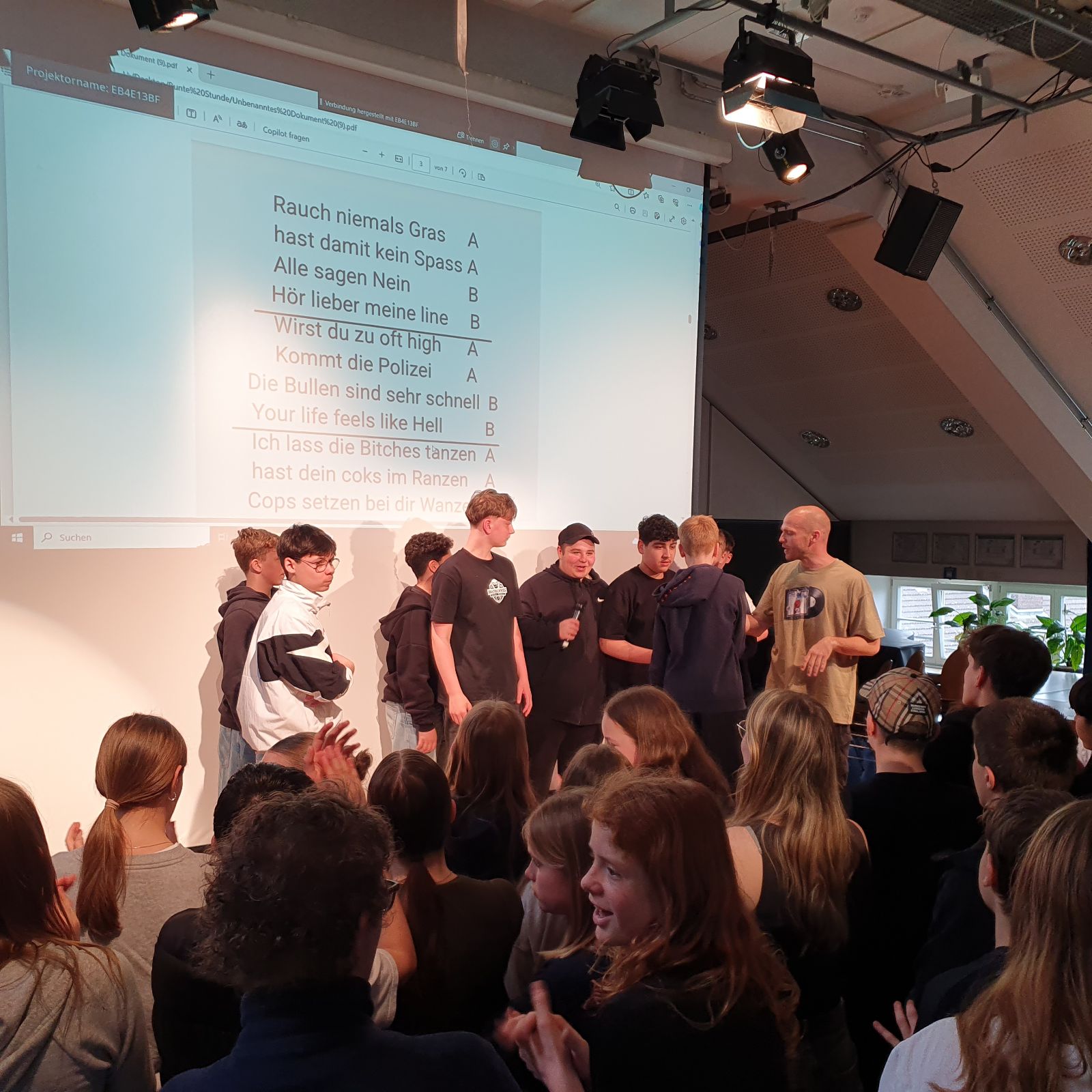 Im „Hip-Hop-Rap“-Workshop konnten die Schüler:innen ihre musikalischen Talente entfalten und ihre Gedanken sowie Erfahrungen zum Thema Sucht und Sehnsucht in kreative Texte und Rap-Verse verwandeln.