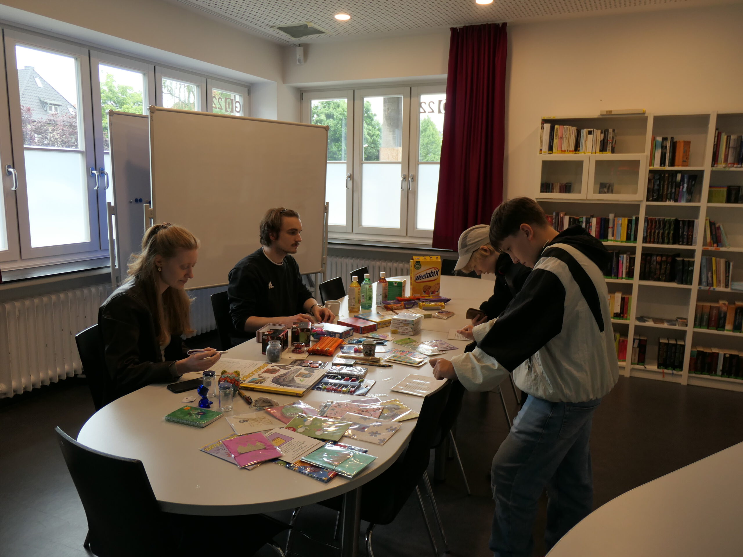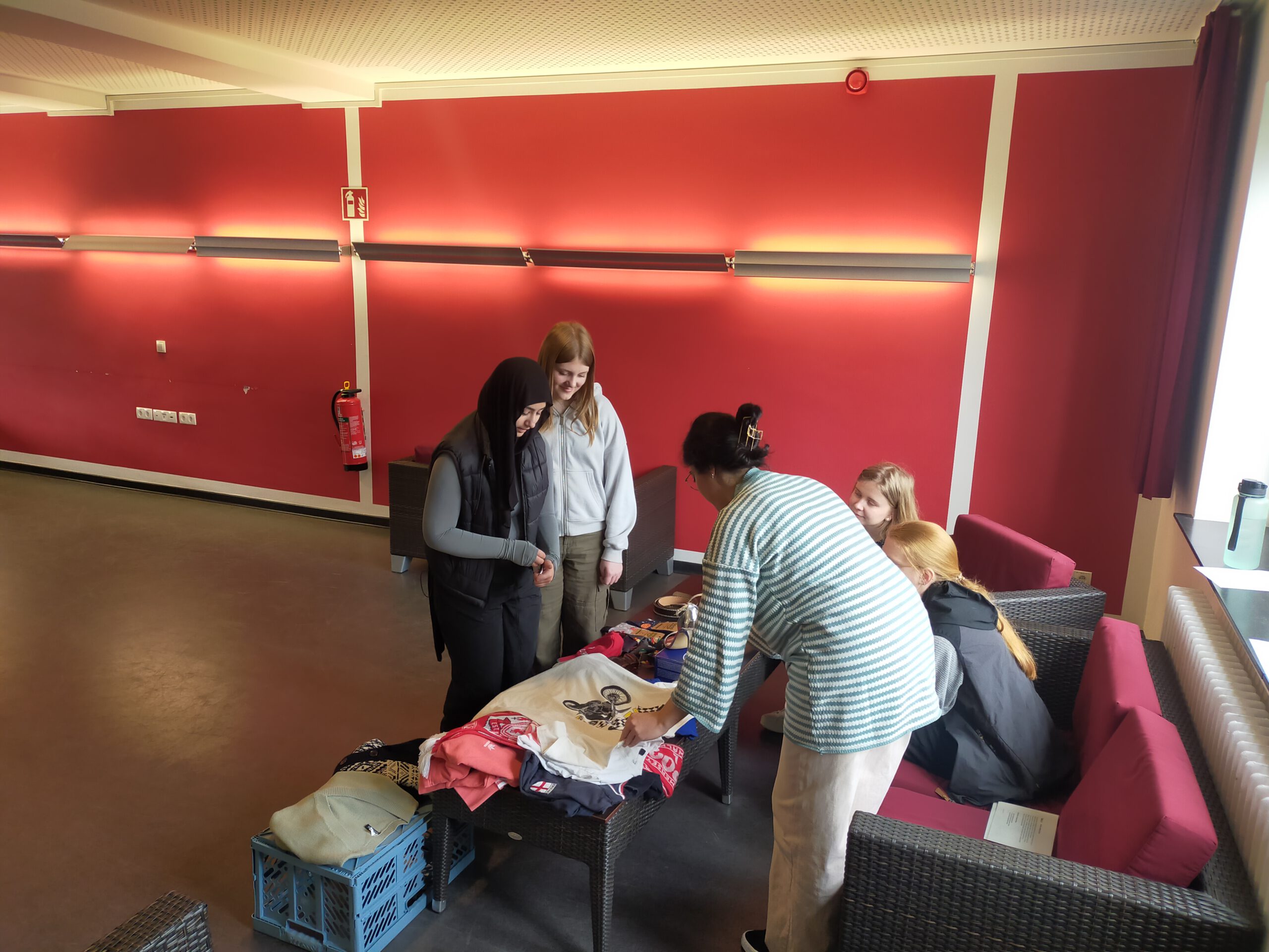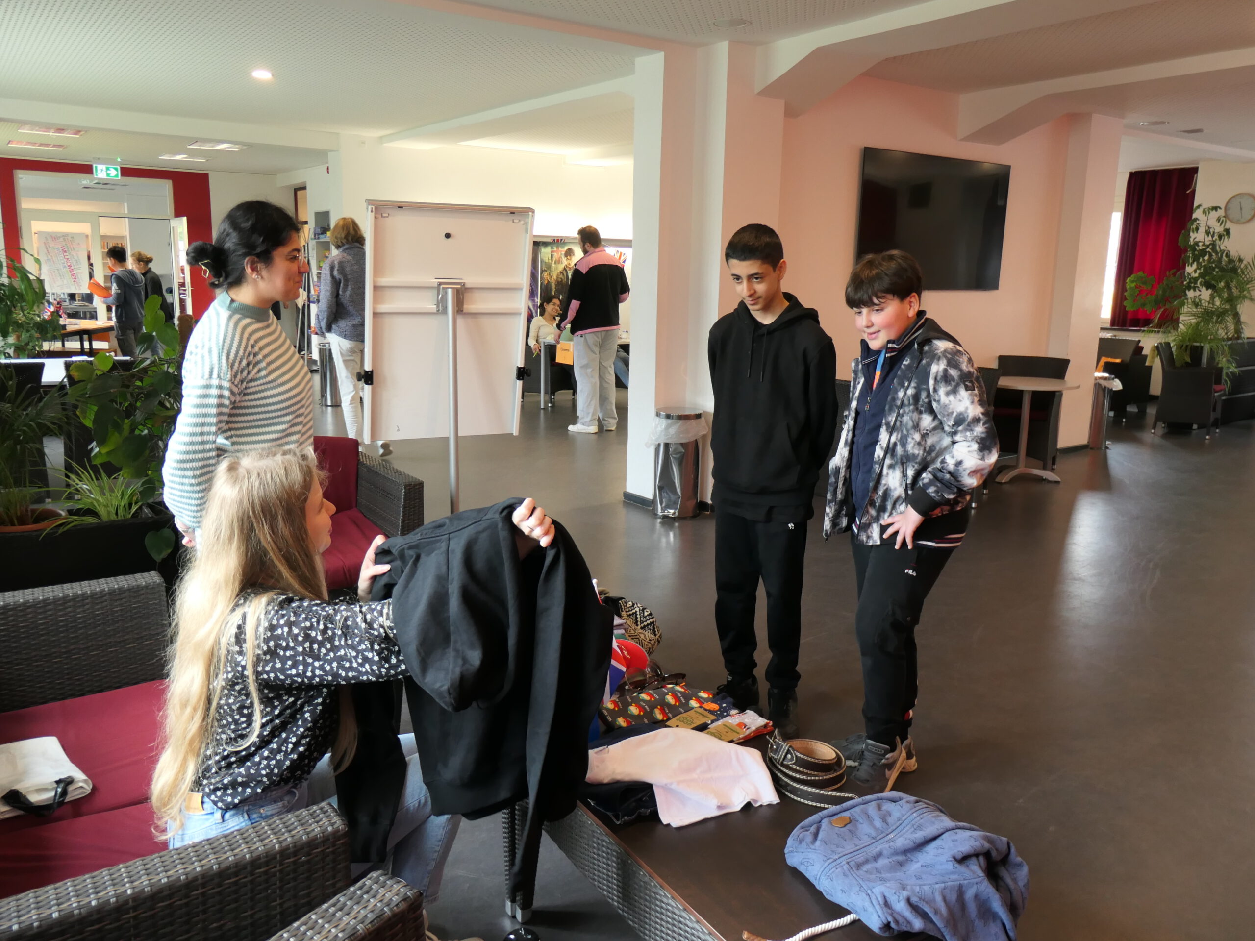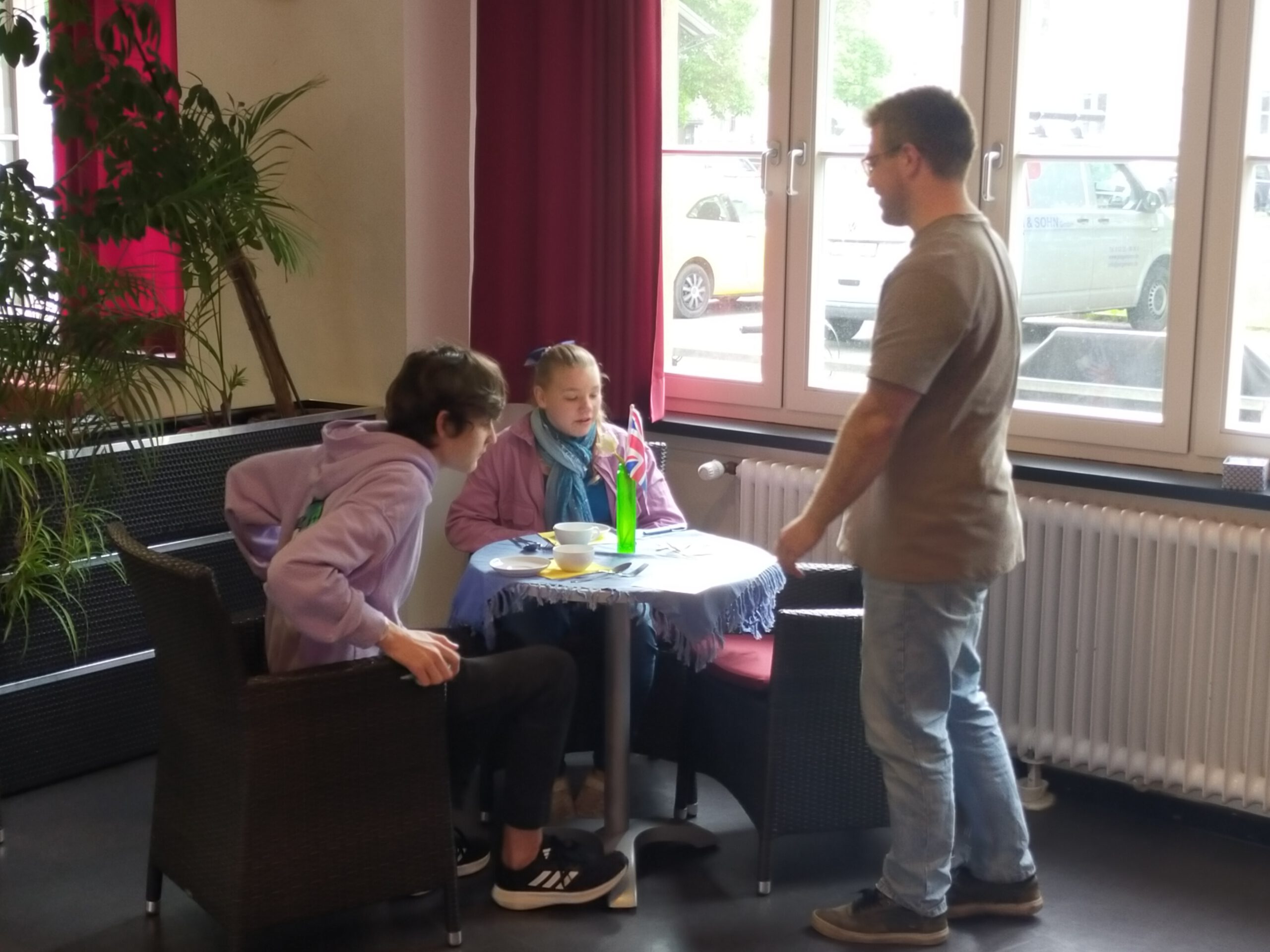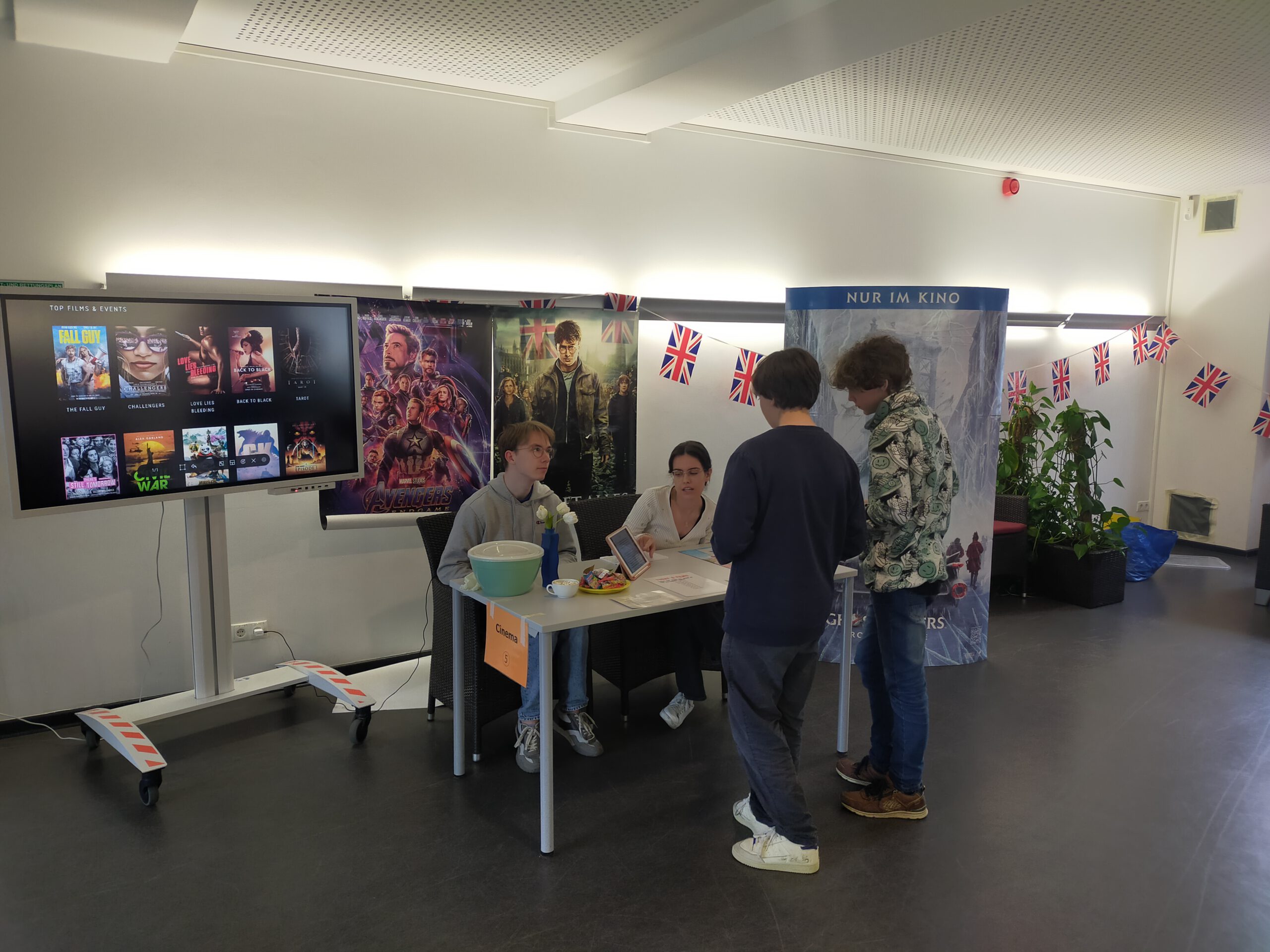 Das Motto „Englisch sprechen, mal so richtig“ prägte auch in diesem Jahr das Sprachendorf der IGSFF. Die Schülerinnen und Schüler des 7. Jahrgangs durchliefen verschiedene Stationen, die Alltagssituationen simulierten. Von der Auswahl eines Kinofilms und dem Kauf von Tickets über die Auswahl von Kleidung und Souvenirs bis hin zur Beratung in Geschäften, dem Einholen von Informationen in einer Touristeninformation und dem Bestellen und Bezahlen in einem Restaurant – all das ausschließlich auf Englisch.