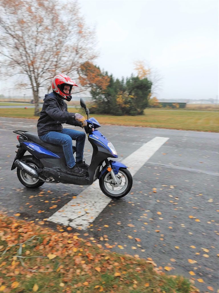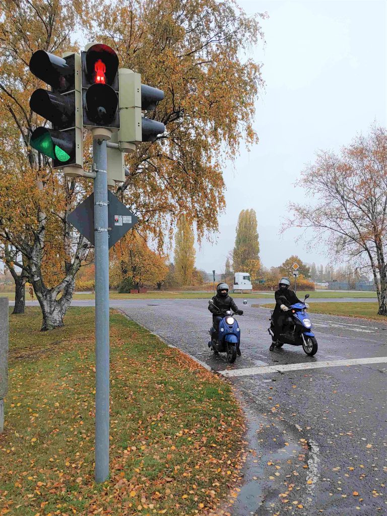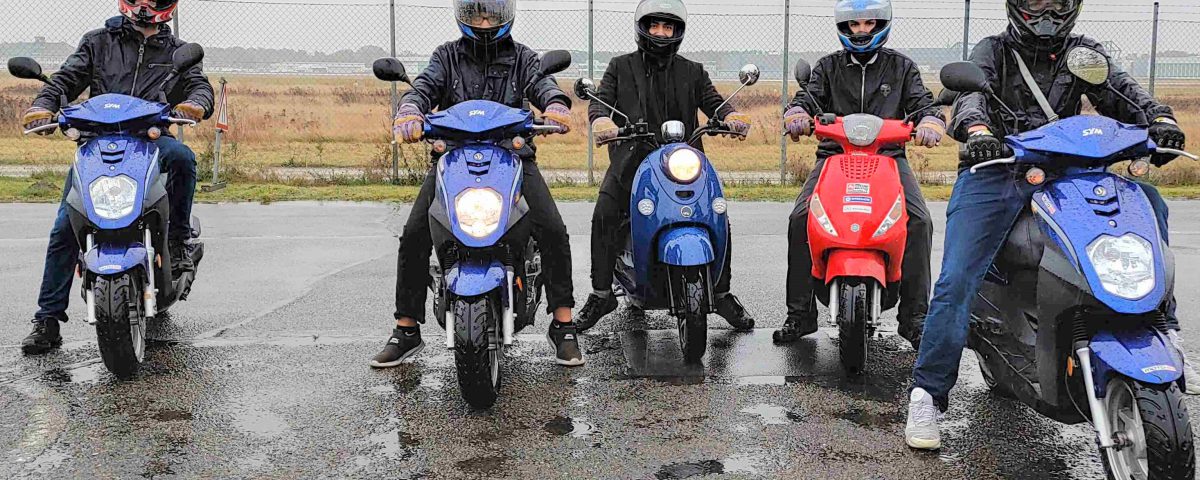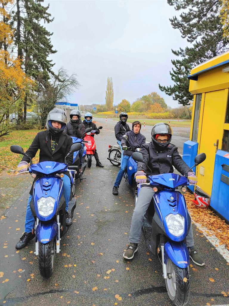 17. November 2021An zwei Tagen meisterten die Teilnehmer der Mobilitäts AG Mofa & Co ihre praktische Prüfung auf dem Verkehrsübungsplatz 2 in Waggum. Dank des Einsatzes der Verkehrswacht Braunschweig, der Abteilung Schule und Transport der Stadt Braunschweig und der BSVG konnten die Jugendlichen trotz Winterpause Fahrsicherheit auf den Mofas, Motorrollern und E-Rollern erlangen. Gefahren im Straßenverkehr und Motortechnik standen an den beiden Tagen genauso im Lehrplan wie rücksichtsvolles und vorausschauendes Verhalten im Straßenverkehr. Nachdem die AG-Teilnehmer nun ein Jahr lang Verkehrsregeln gepaukt haben, steht demnächst die theoretische Prüfung zur Erlangung der Fahrerlaubnis für motorisierte Fahrräder an. Und dann, dann weht der (Fahrt-)Wind der Freiheit um die Nase der Mofa-Fahrer.