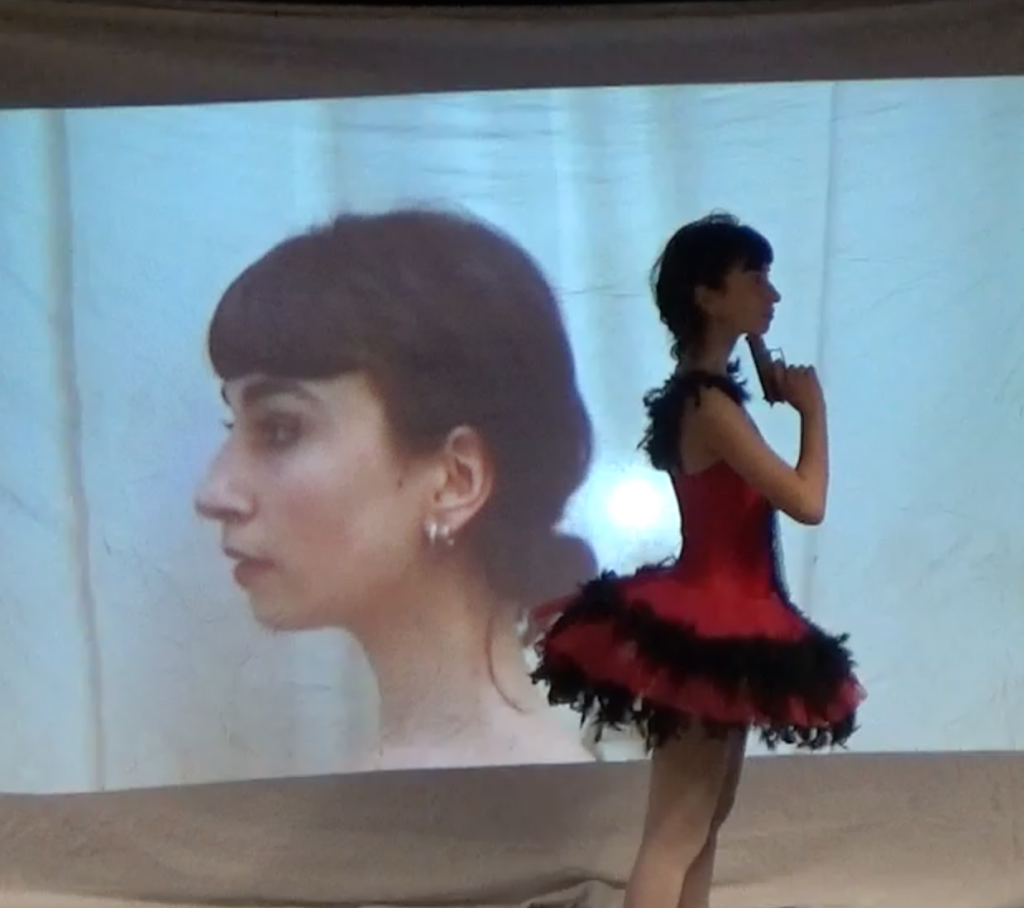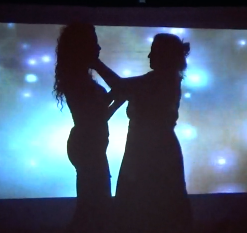 In der Inszenierung werden theatrale und filmische Mittel gegenübergestellt.