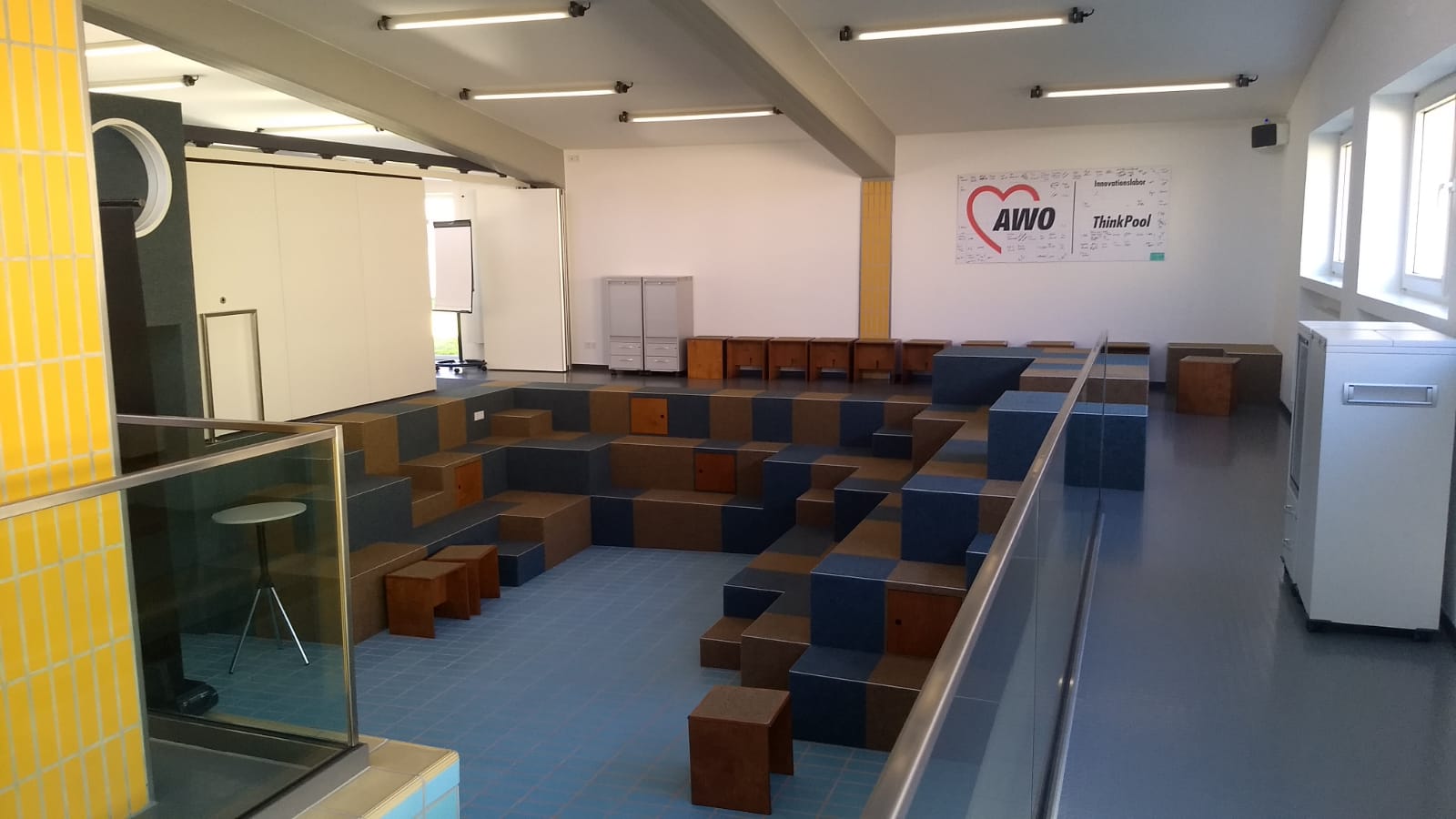 In dem Innovationslabor halten Mitarbeiter der AWO ihren sogenannten „Innovationswettbewerb“ ab.
