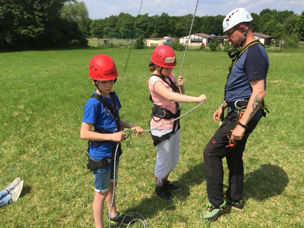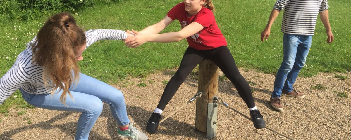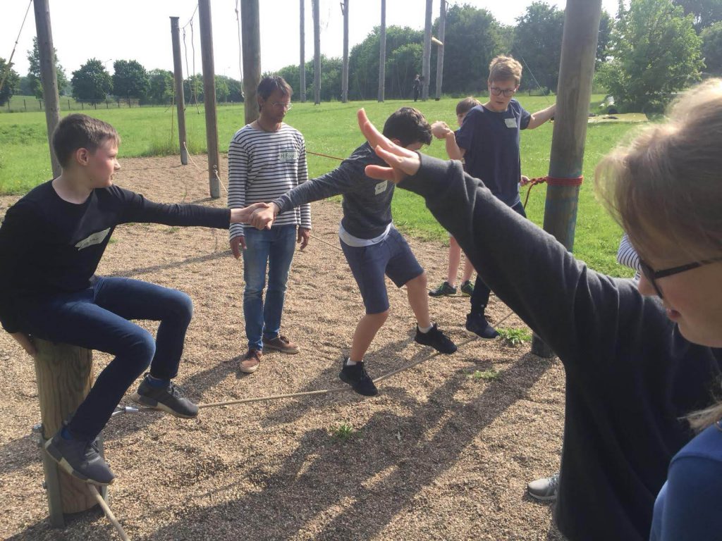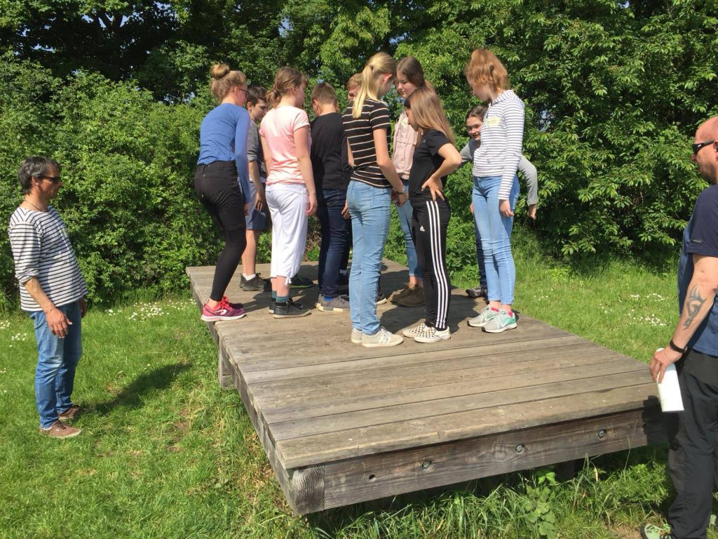 7. Juni 2019So lautete der einfache Merksatz, mit dem die SchülerInnen der Wahlpflichtkurse des 7. Jahrgangs das Sichern ihrer PartnerInnen im Hochseilgarten erlernten. In diesem Jahr fand das inzwischen schon traditionelle Teamtraining für die einzelnen WPBs erstmalig in Salzgitter statt.