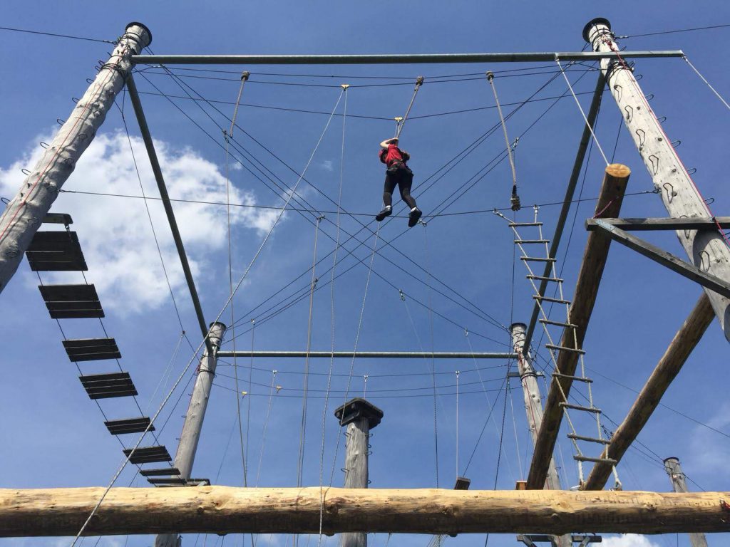 Im Niedrigseilgarten war Kreativität und Teamwork gefragt: Es galt, den Mohawk-Walk zu überwinden, bei dem die Gruppe als Ganzes einen Seilparcours in geringer Höhe meistern sollte. Auf den wackligen Seilen und zwischen den weit auseinander stehenden aber Halt bietenden Pfosten brauchten alle Kurse zwar einige Versuche, kamen aber letztlich alle ans Ziel. Absprachen und viel Fingerspitzengefühl forderte auch die Teamwippe, die von allen erklommen werden musste, ohne dass das wacklige Konstrukt aus dem Gleichgewicht geriet. Wie schon zuvor schafften die WPBs in gemeinschaftlicher Zusammenarbeit die gar nicht so leichte Aufgabe. Hoch hinaus ging es erstmals dann an der „Wall“. Die über drei Meter hohe Mauer war nur mit allem Krafteinsatz und der Hilfe aller zu bewältigen. Mutig und mit viel gegenseitiger Unterstützung wurde auch dieses Hindernis von fast allen überwunden.